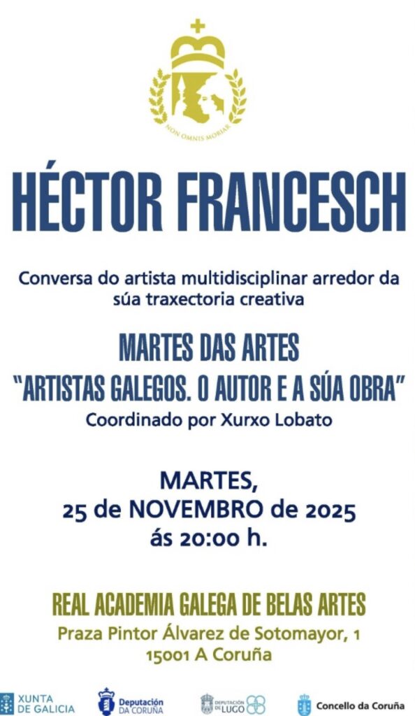 Sin categoría Martes das Artes El 25 de noviembre estaré dando una charla sobre mi recorrido artístico, invitado por Xurxo…hfrancesch24 noviembre 2025